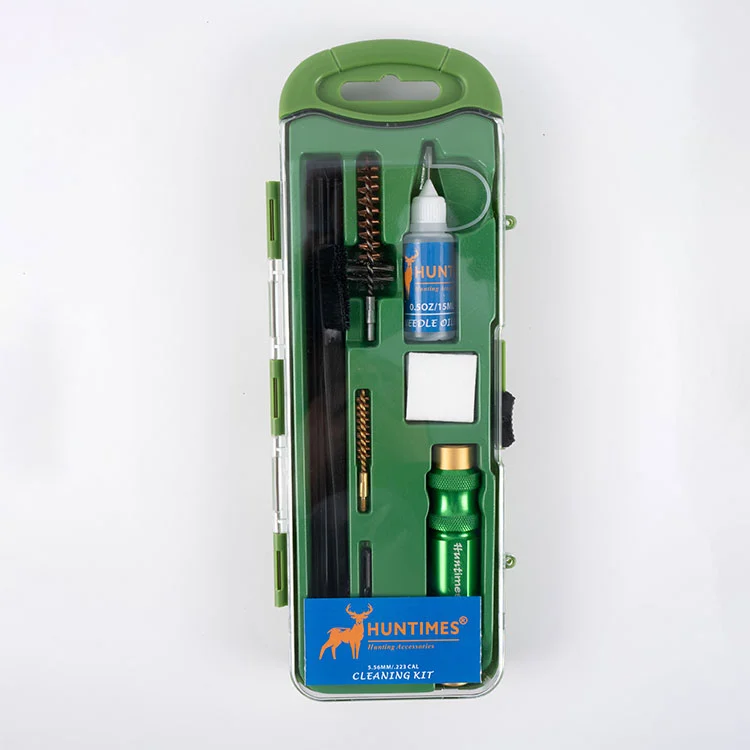 Ez a Shanghai Hunting Speed Industry&Trade Co., Ltd. 5,56 mm-es, 223 kaliberű fegyvertisztító készlete erős alumínium nyéllel rendelkezik, és tartós alumíniumötvözetből készült. Tartalmaz négy acél tisztítórudat, egy csillagkamrás kefét az 5,56 mm-es golyókhoz, egy kamrakefét 0,223-as kaliberhez, egy tapaszlehúzót a 223-as kaliberhez és egy 15 ml-es üres olajpalackot. A tartozékokhoz tartozik még egy tisztító nylon kefe, 25 tisztító tapasz és egy luxus alumínium nyél. Ez a készlet tökéletes az AR fegyvervadászat-tartozékok tisztítási igényeihez.